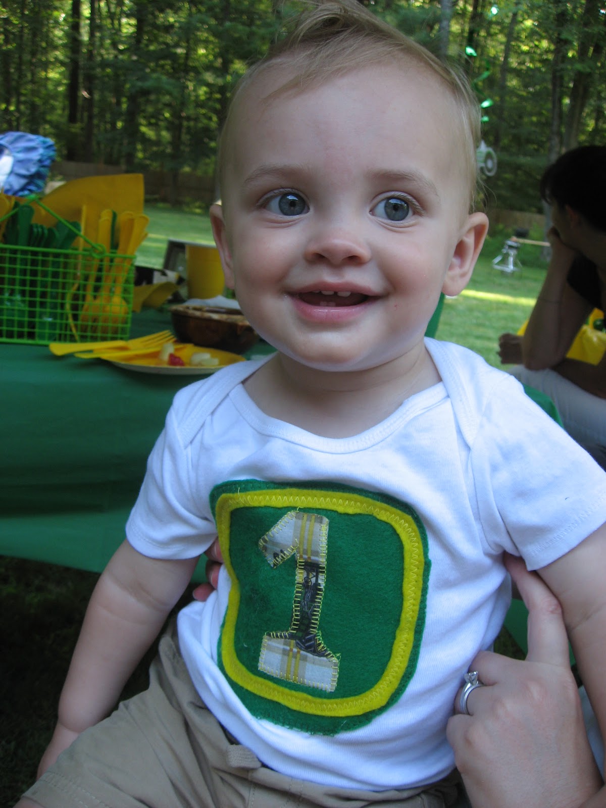 in the woods, and below: